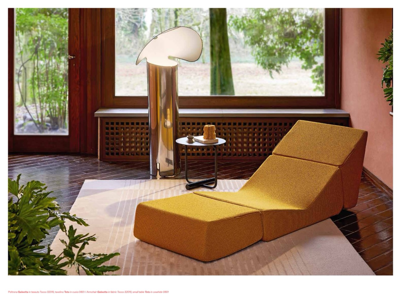 Poltrona Galeotta in tessuto Tocco 32015; tavolino Toto in cuoio 0801 / Armchair Galeotta in fabric Tocco 32015; small table Toto in cowhide 0801