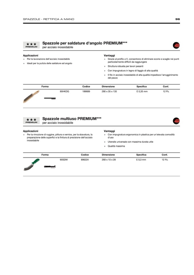 + Grazie al profilo a V, consentono di eliminare scorie e scaglie nei punti
