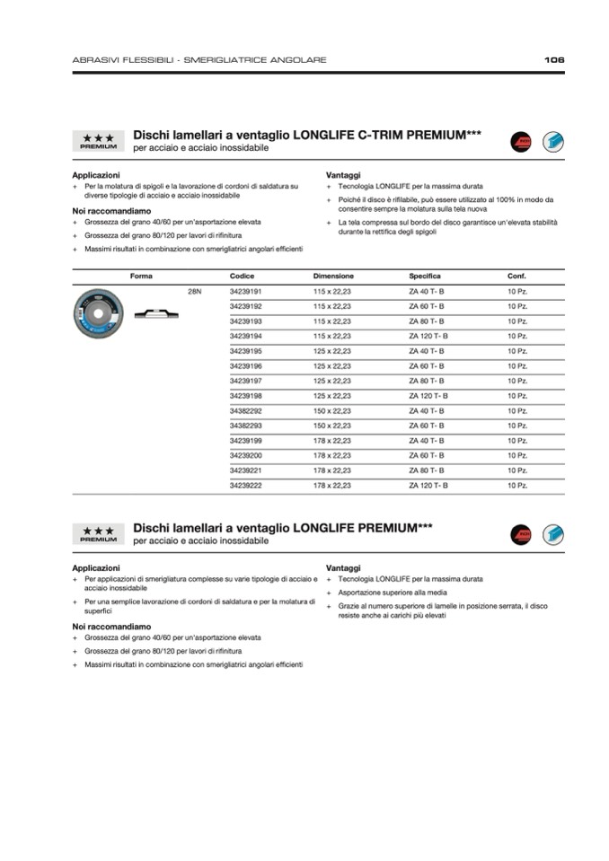 + Per applicazioni di smerigliatura complesse su varie tipologie di acciaio e