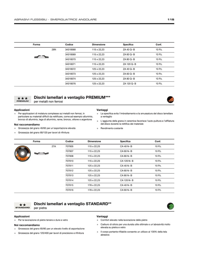 + L'aggiunta della grana in ceramica favorisce l'auto-pulitura e l'affilatura
