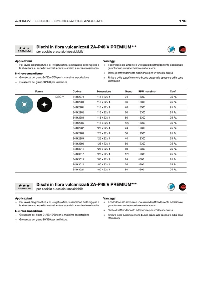 + Grossezza del grano 24/36/40/60 per la massima asportazione