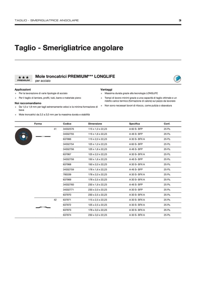 + Da 1,0 a 1,9 mm per tagli estremamente veloci e la minima formazione di