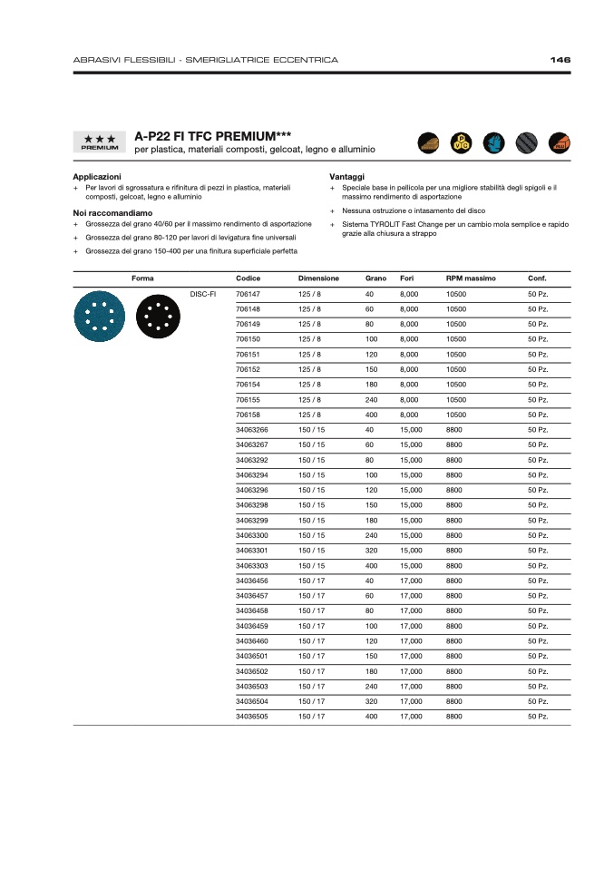 + Grossezza del grano 150-400 per una finitura superficiale perfetta