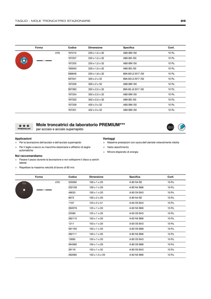 + Per il taglio a secco su macchine stazionarie e affilatrici di seghe