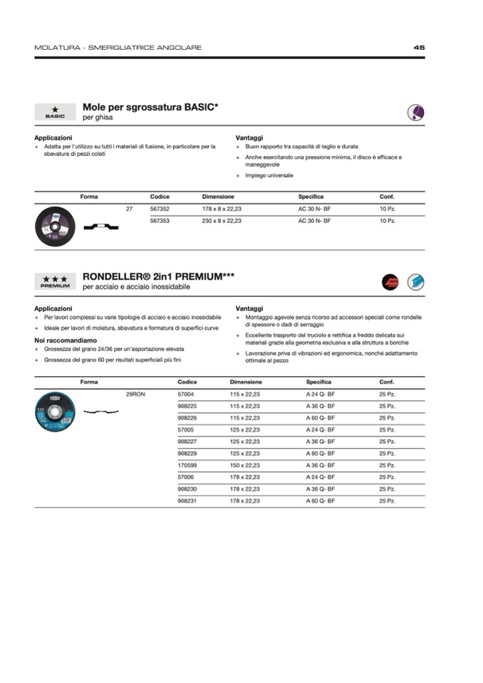 + Ideale per lavori di molatura, sbavatura e formatura di superfici curve