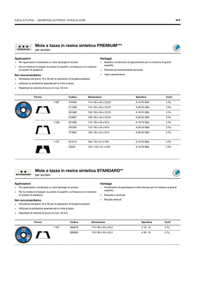+ Grossezza del grano 16 e 36 per le operazioni di levigatura grezza