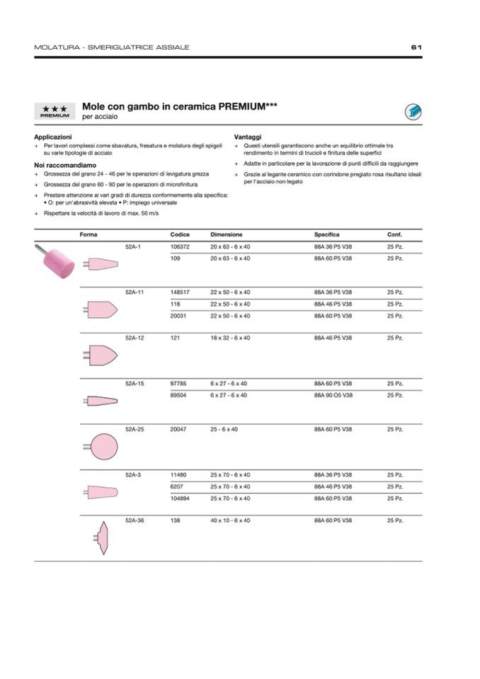 + Grossezza del grano 60 - 90 per le operazioni di microfinitura