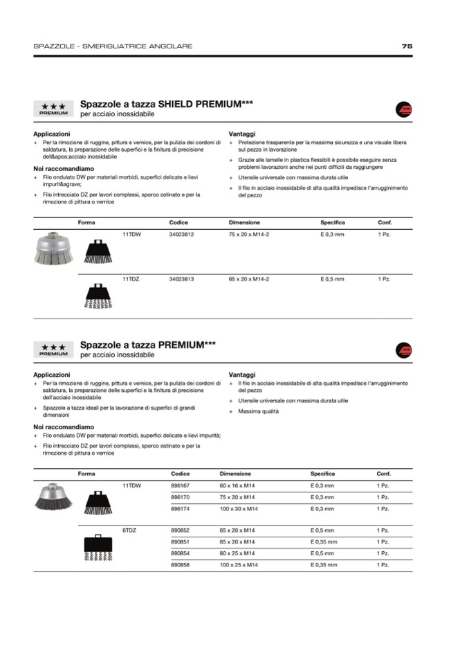 + Spazzole a tazza ideali per la lavorazione di superfici di grandi