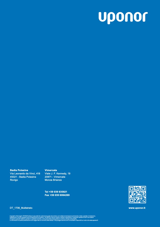 Copyright e Note legali: UPONOR detiene il copy right dei contenuti di questo documento: ne è vietata la riproduzione permanente, totale o parziale, la traduzione,
