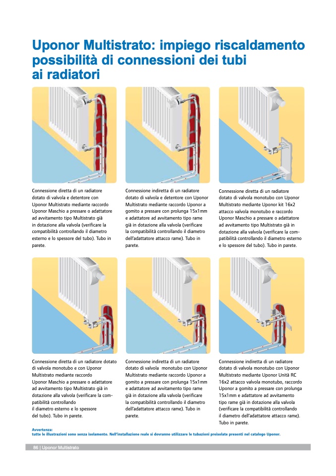 tutte le illustrazioni sono senza isolamento. Nell’installazione reale si dovranno utilizzare le tubazioni preisolate presenti nel catalogo Uponor.