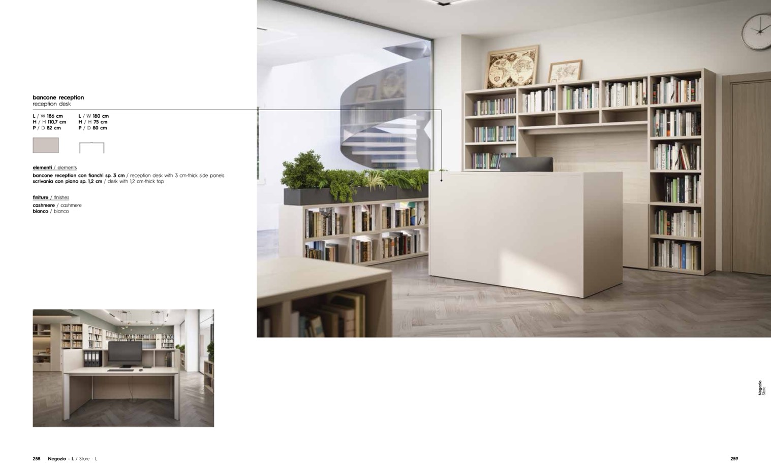 bancone reception con fianchi sp. 3 cm / reception desk with 3 cm-thick side panels