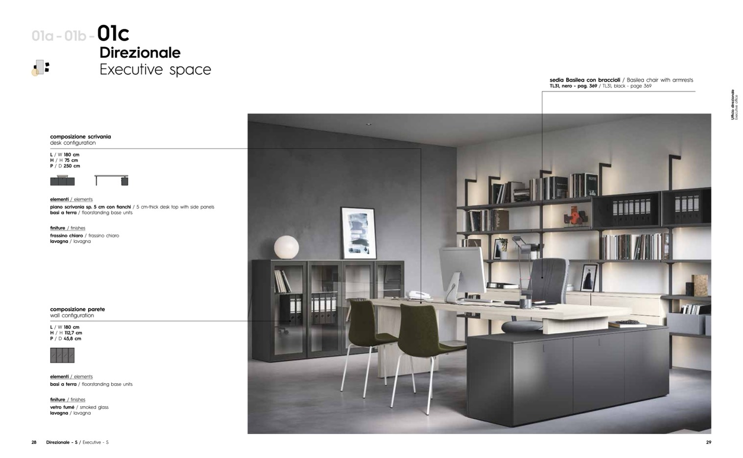 piano scrivania sp. 5 cm con fianchi / 5 cm-thick desk top with side panels