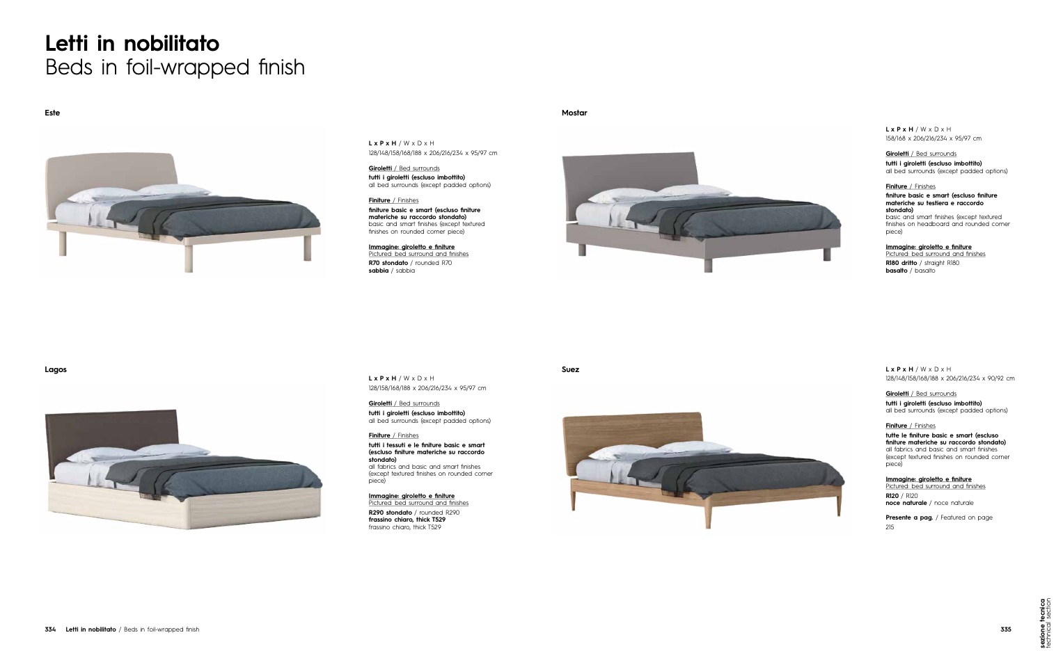 334 Letti in nobilitato / Beds in foil-wrapped finish