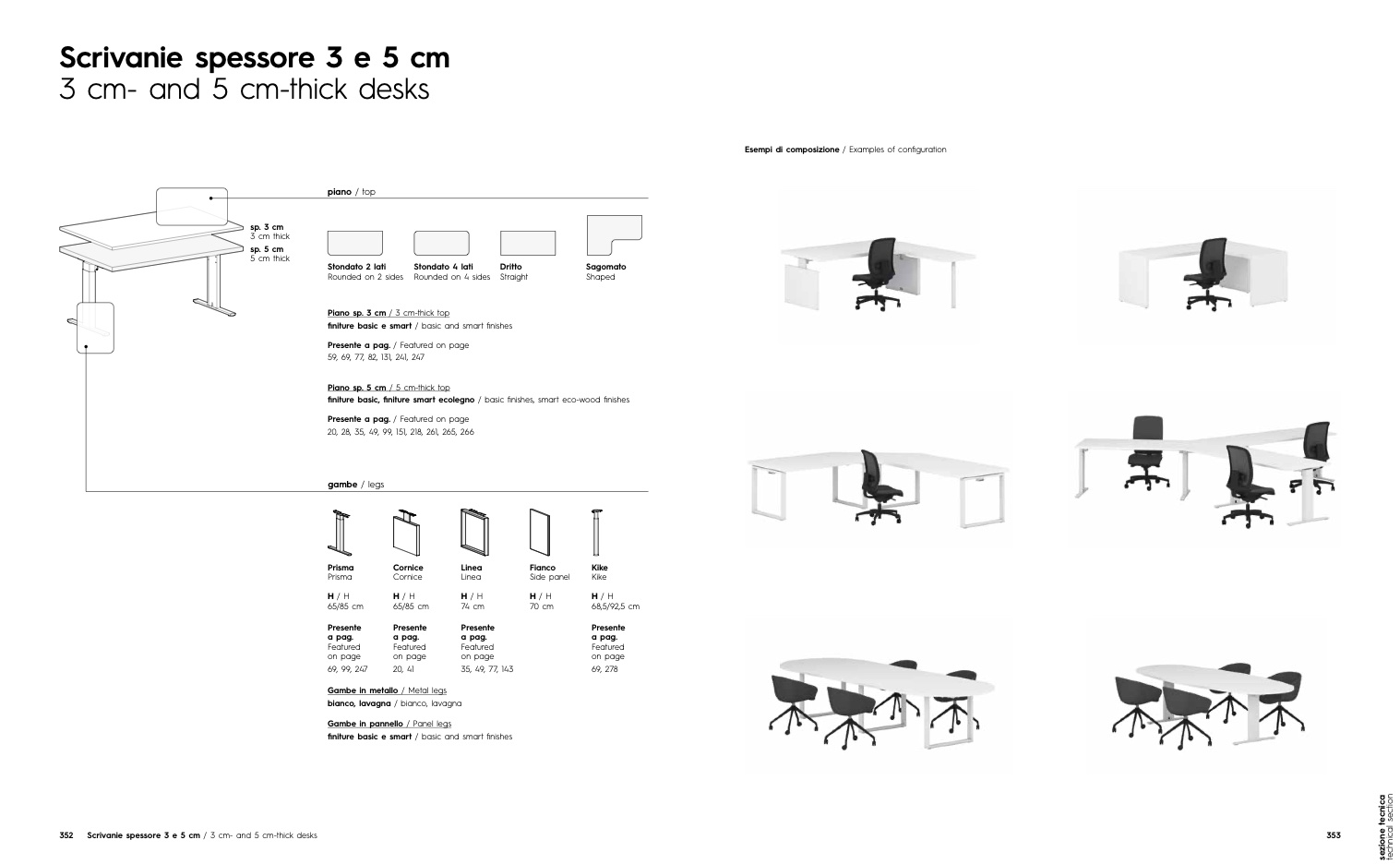 Scrivanie spessore 3 e 5 cm / 3 cm- and 5 cm-thick desks