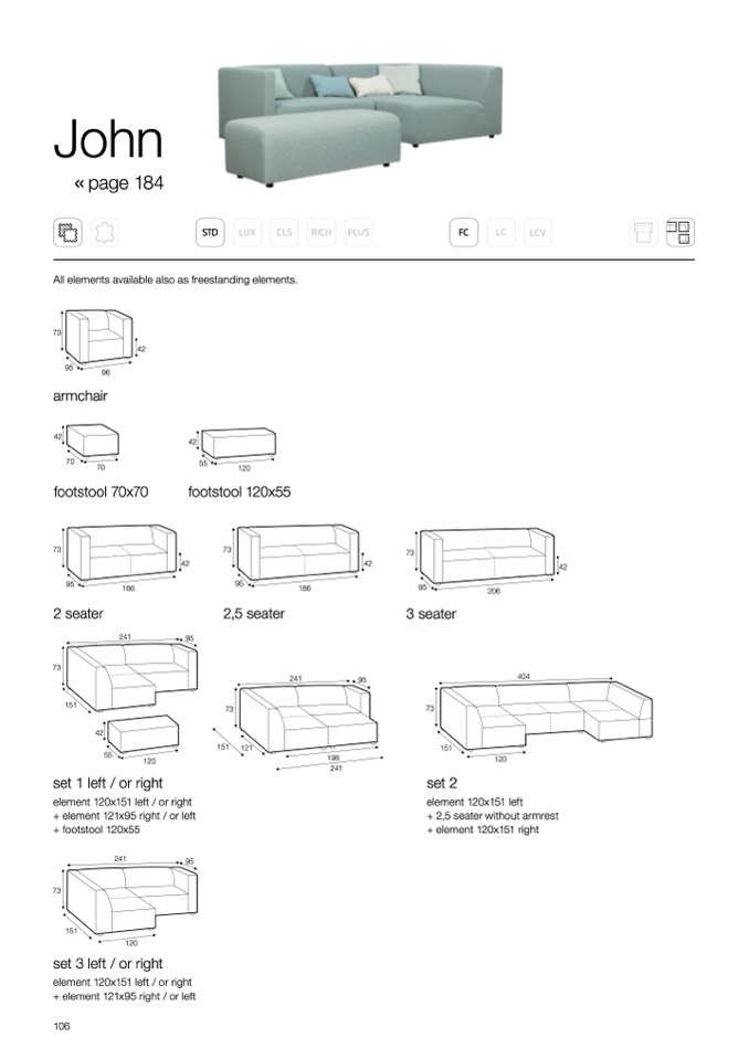 + 2,5 seater without armrest