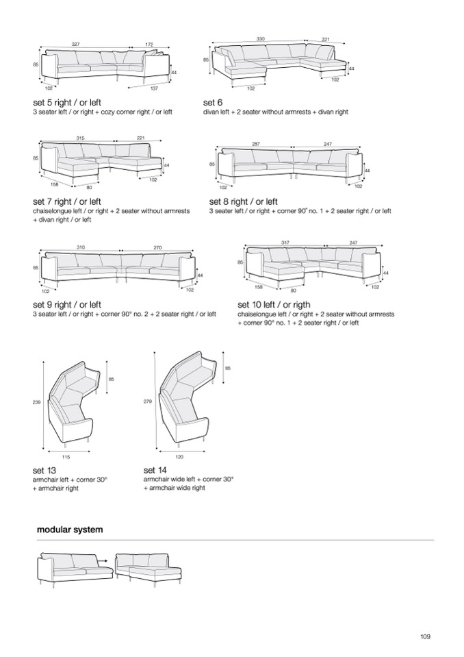 3 seater left / or right + corner 90 ̊ no. 1 + 2 seater right / or left