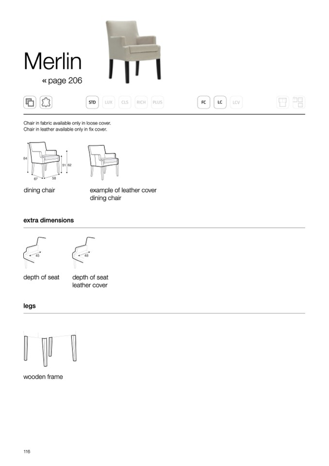 Chair in leather available only in fix cover.