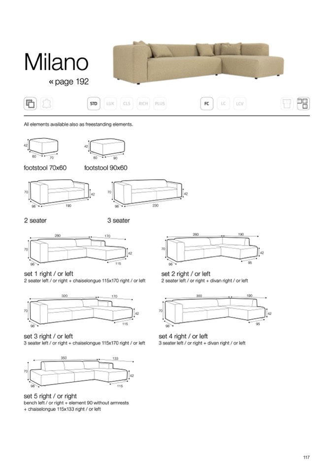 2 seater left / or right + chaiselongue 115x170 right / or left
