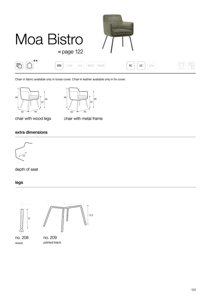 Chair in fabric available only in loose cover. Chair in leather available only in fix cover.
