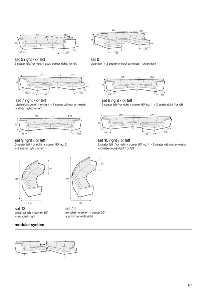 3 seater left / or right + corner 90 ̊ no. 1 + 2 seater right / or left