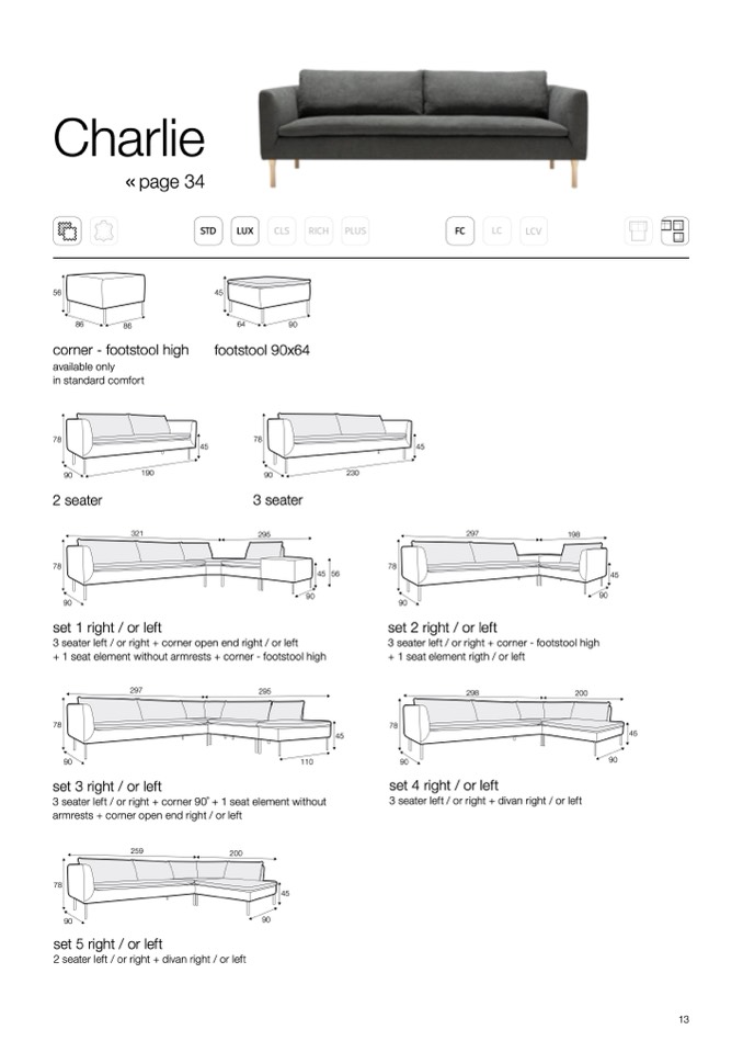 3 seater left / or right + corner - footstool high