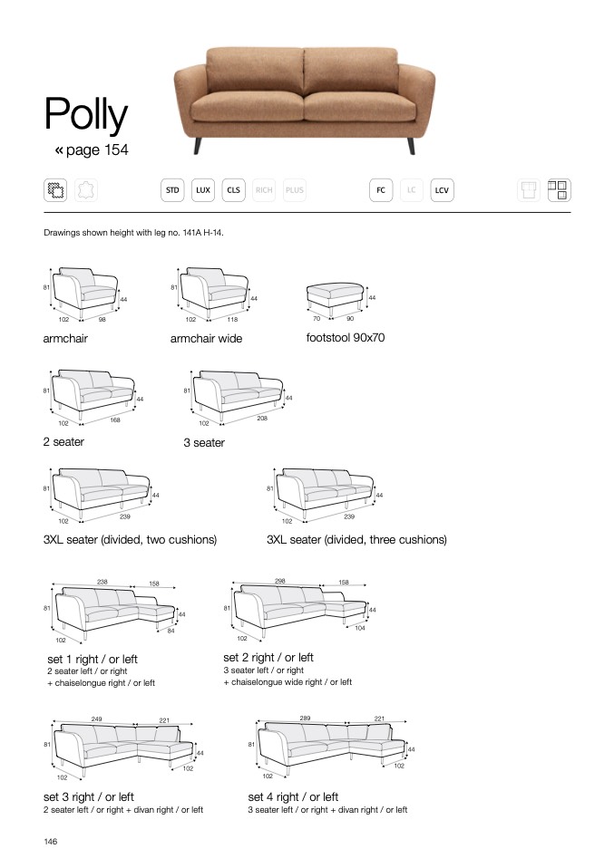 Drawings shown height with leg no. 141A H-14.