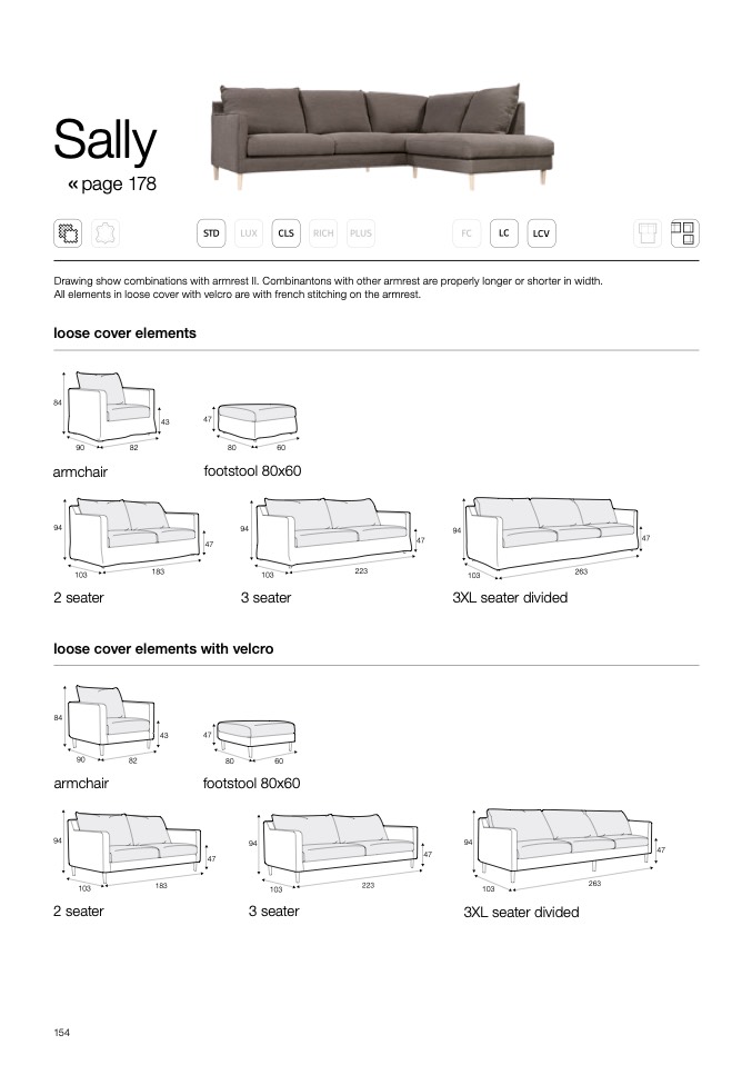 All elements in loose cover with velcro are with french stitching on the armrest.