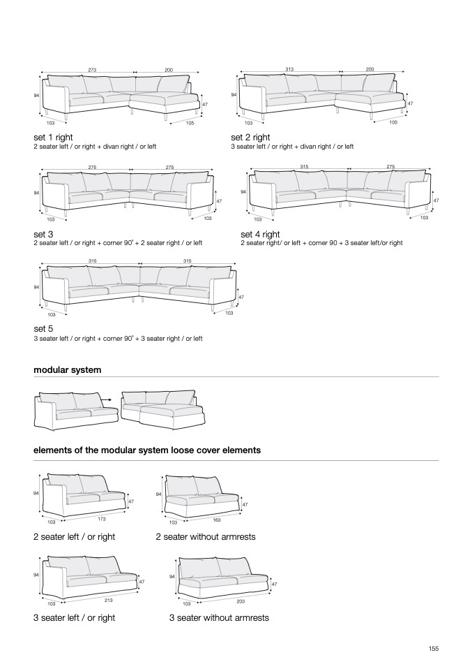 2 seater left / or right + corner 90 ̊ + 2 seater right / or left