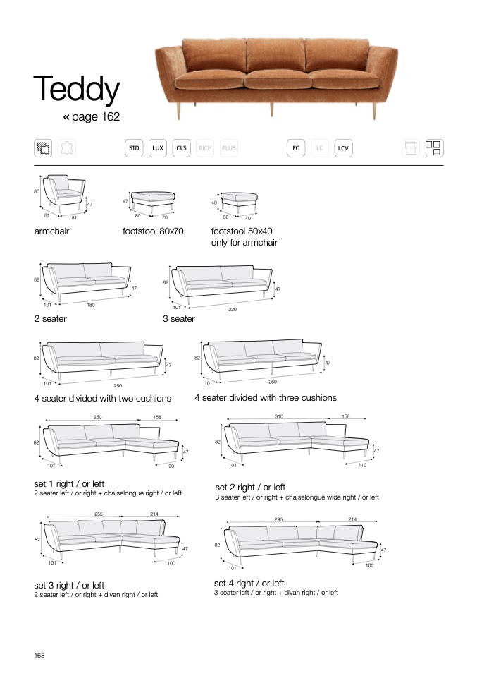 3 seater left / or right + chaiselongue wide right / or left