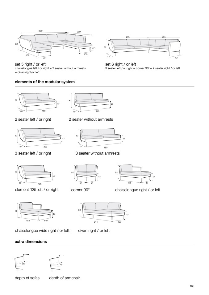 chaiselongue left / or right + 2 seater without armrests