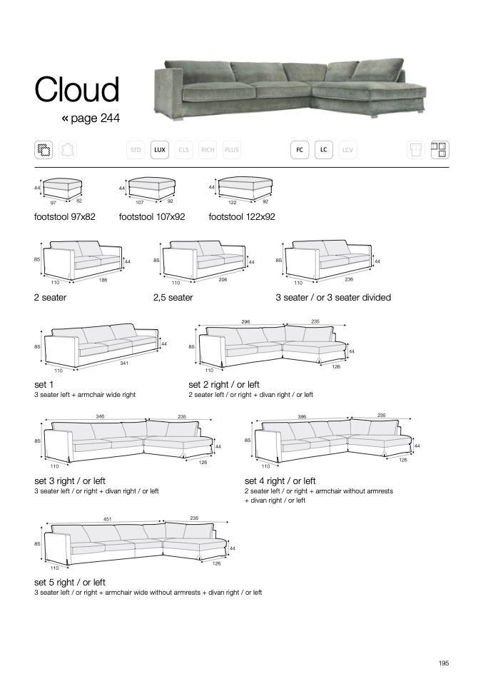 3 seater left / or right + armchair wide without armrests + divan right / or left