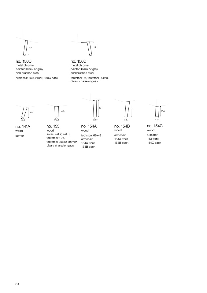 armchair: 150B front, 150C back