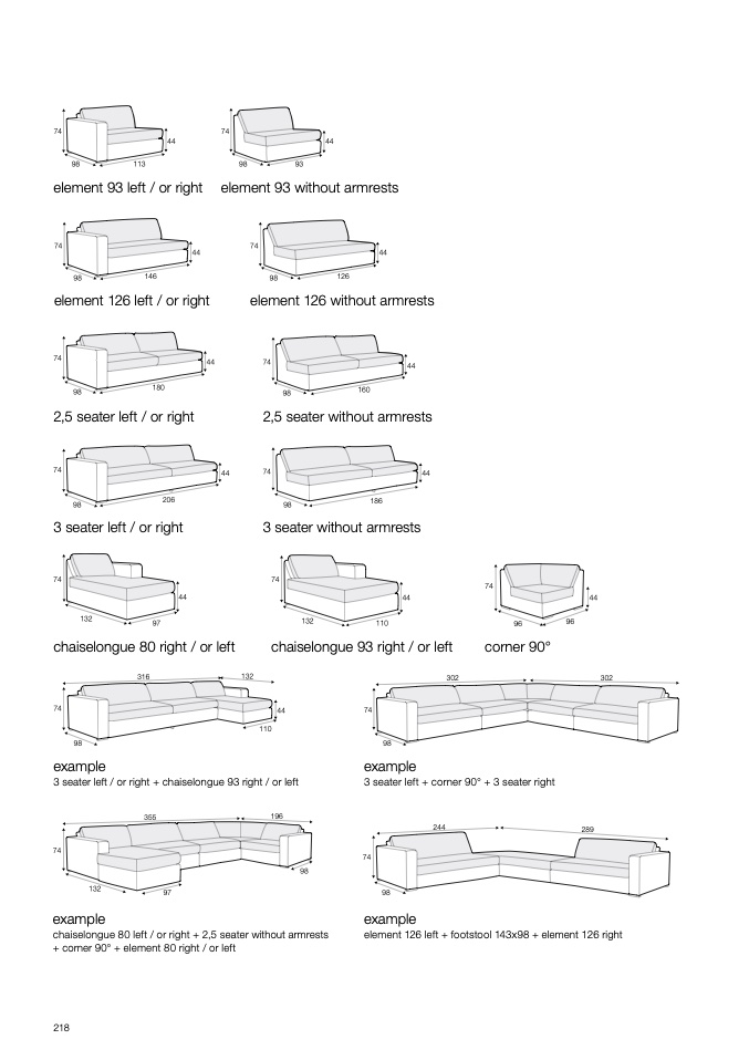 chaiselongue 80 left / or right + 2,5 seater without armrests