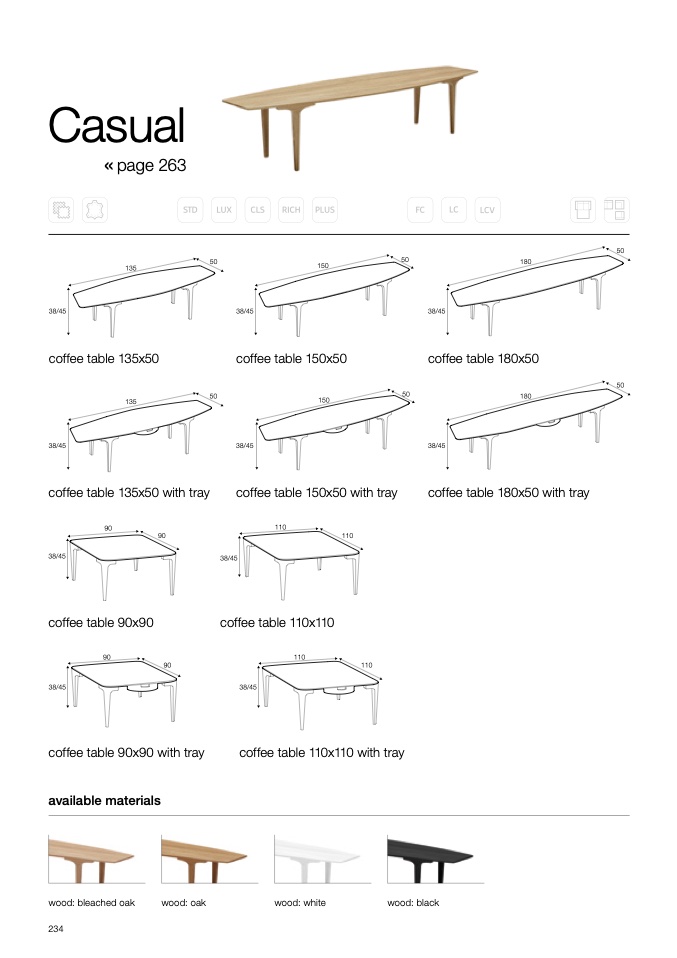 coffee table 135x50 with tray
