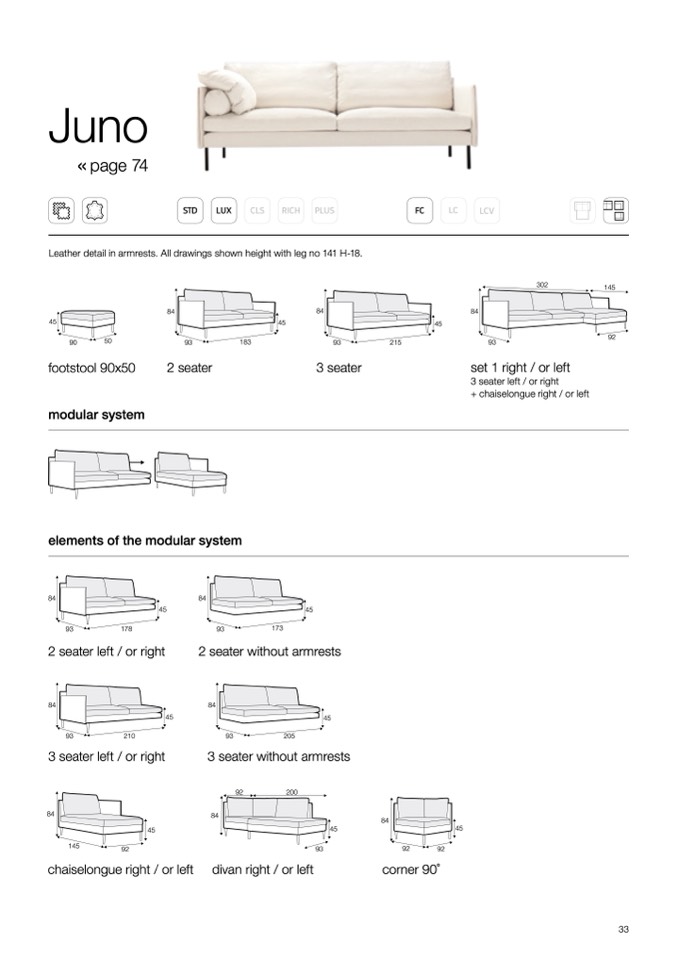 Leather detail in armrests. All drawings shown height with leg no 141 H-18.