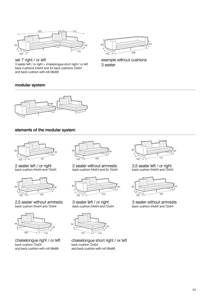 back cushions 54x54 and 2x back cushions 72x54