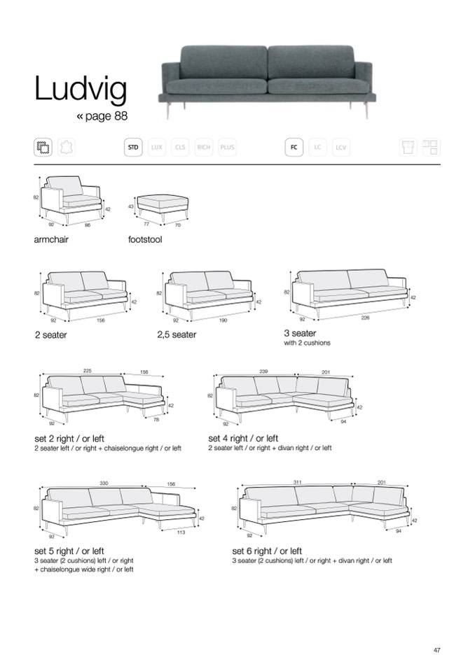 3 seater (2 cushions) left / or right