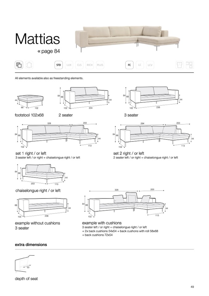 + 2x back cushions 54x54 + back cushons with roll 58x68