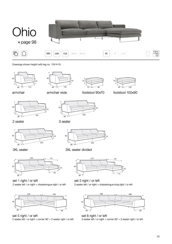 2 seater left / or right + corner 90 ̊ + 2 seater right / or left