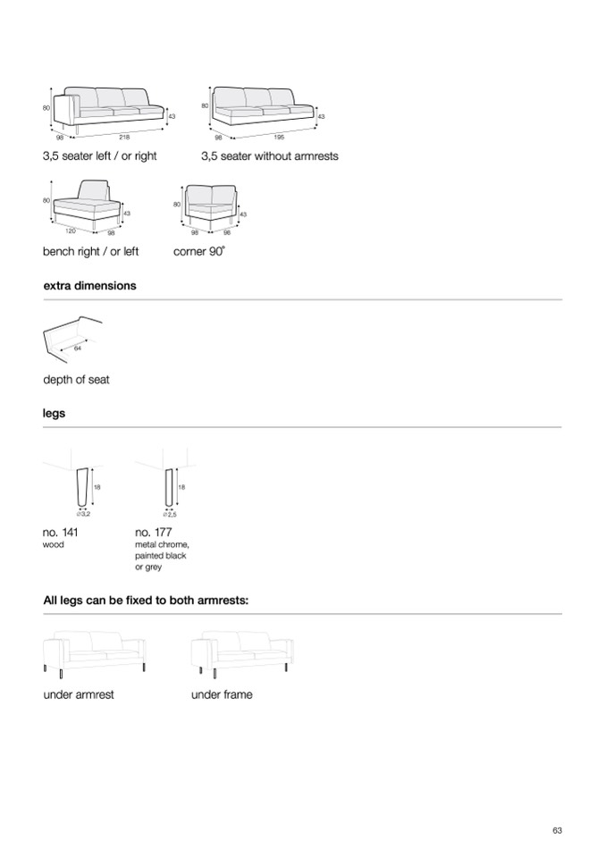 3,5 seater without armrests