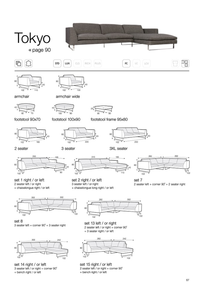 2 seater left / or right + corner 90 ̊