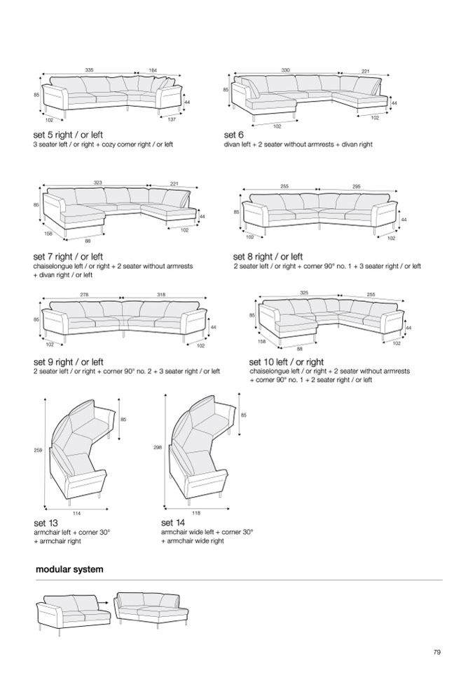 2 seater left / or right + corner 90° no. 2 + 3 seater right / or left