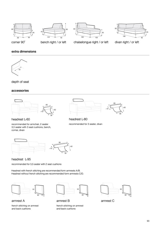 Headrest with french stitching are recommended form armrests A/B.