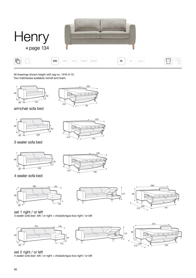 All drawings shown height with leg no. 141A H-15.