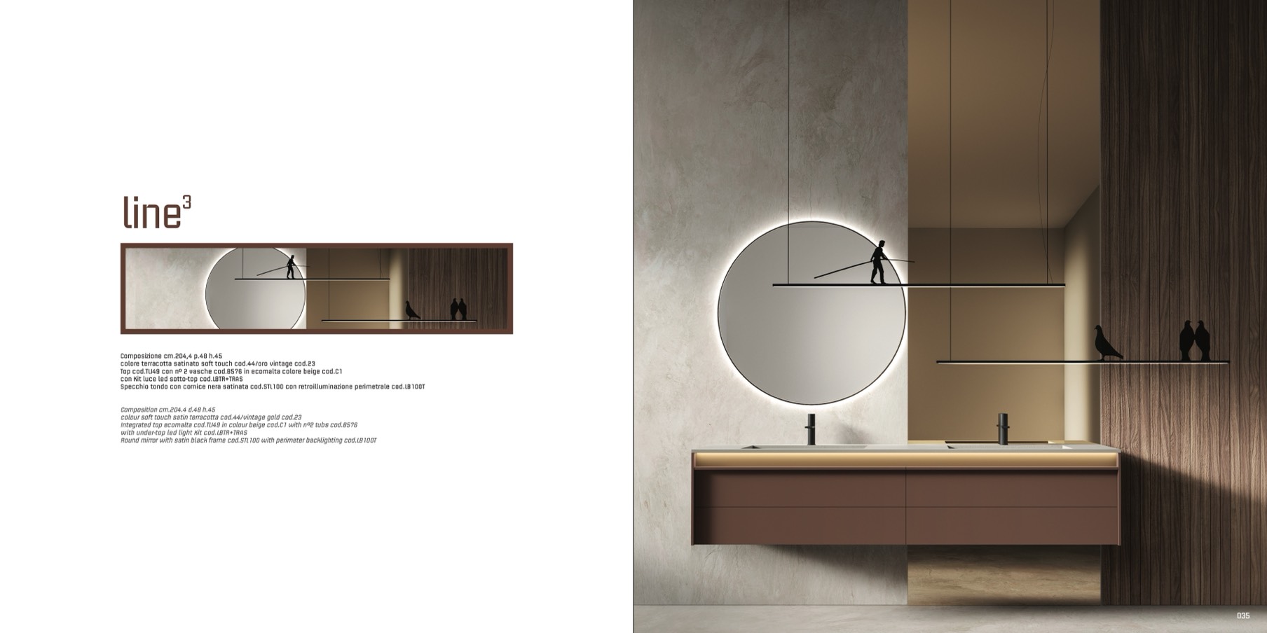 Round mirror with satin black frame cod.STL100 with perimeter backlighting cod.LB100T