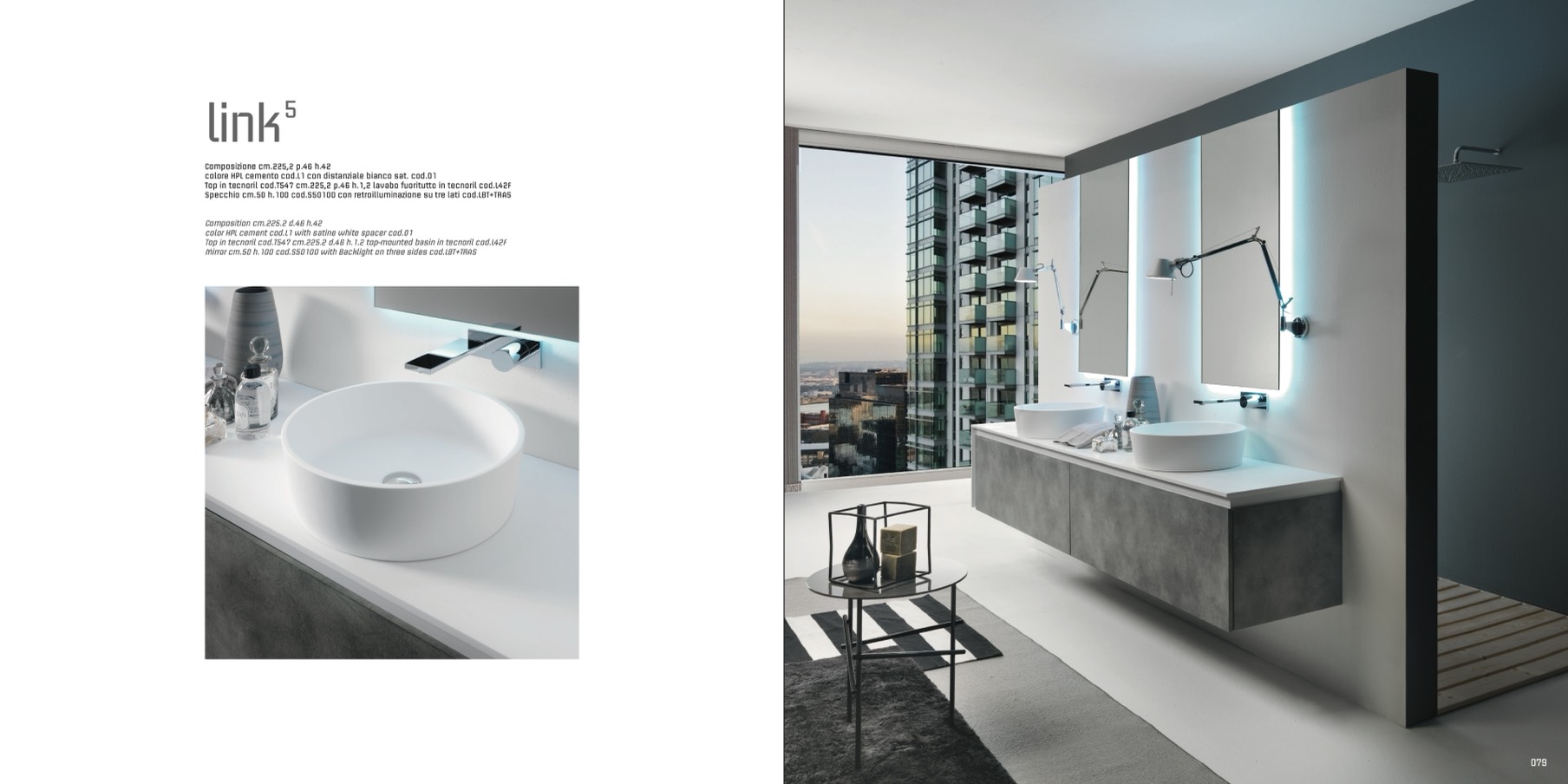 Top in tecnoril cod.T547 cm.225.2 d.46 h.1.2 top-mounted basin in tecnoril cod.L42F