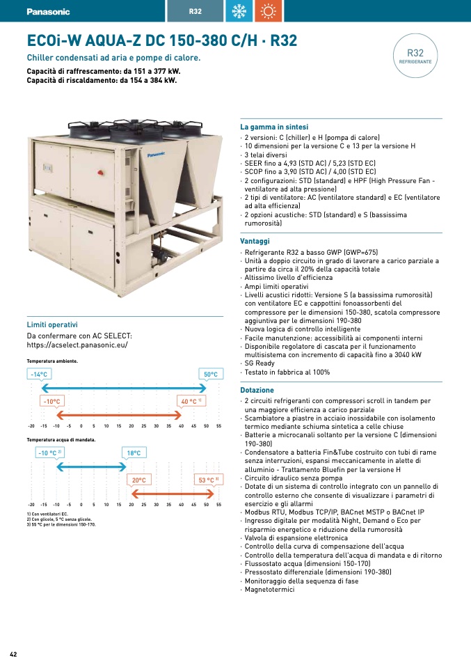 Capacità di riscaldamento: da 154 a 384 kW