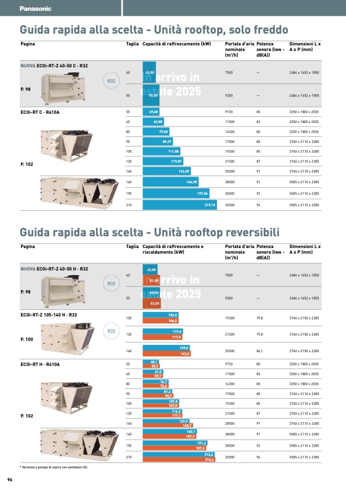 * Versione a pompa di calore con ventilatori EC