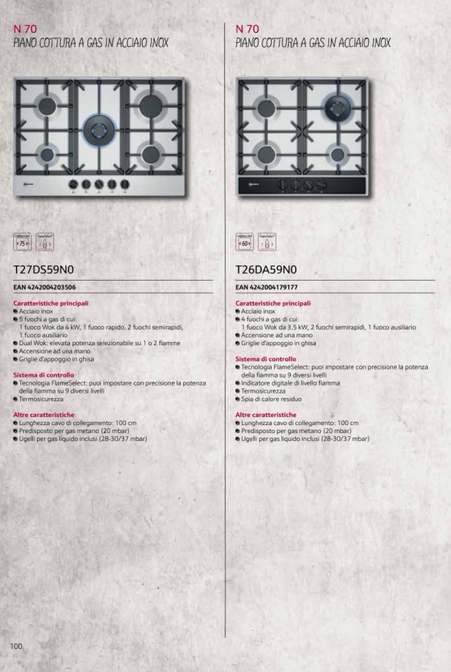 1 fuoco Wok da 3.5 kW, 2 fuochi semirapidi, 1 fuoco ausiliario