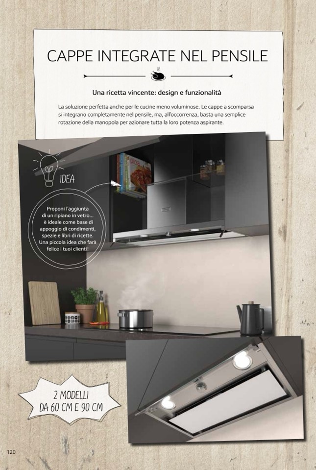 La soluzione perfetta anche per le cucine meno voluminose. Le cappe a scomparsa